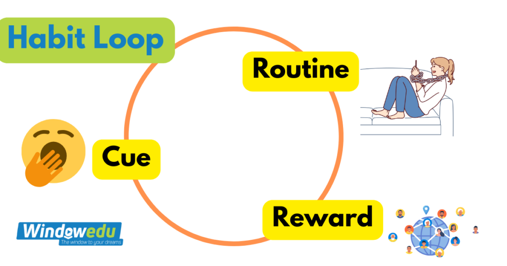 ശീലചക്രം (habit loop) എങ്ങനെ ആസക്തി നിറഞ്ഞ പെരുമാറ്റങ്ങൾക്ക് കാരണമാകുമെന്ന് അരുണിന്റെ കഥ വ്യക്തമായി ചിത്രീകരിക്കുന്നു. പഠിക്കുമ്പോൾ വിരസതയോ ക്ഷീണമോ തോന്നുമ്പോൾ, അവൻ തന്റെ മൊബൈൽ ഫോണിൽ സുഖം തേടി. ഈ പെരുമാറ്റം അവന് താൽക്കാലിക ആശ്വാസവും പഠനത്തിന്റെ അനിഷ്ടത്തിൽ നിന്ന് തൽക്ഷണ മോചനവും നൽകി.
